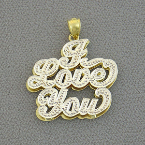 Express your deepest emotions through this stunning "I Love You" pendant, engineered with dual-plate solid gold construction and three-dimensional lettering. Diamond accents in white tone elegantly frame each character, with customizable diamond settings to suit your preferences. The refined double-plating technique ensures durability while maintaining a luxurious aesthetic. This sophisticated necklace transcends ordinary jewelry, serving as a profound symbol of affection and an unforgettable present for the woman you cherish most.
