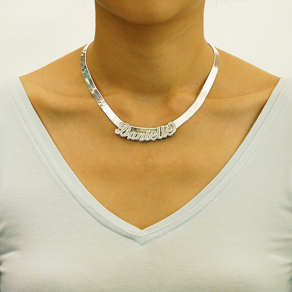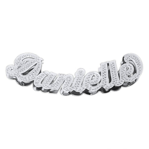 This name pendant finished in Rhodium over solid sterling silver. Rhodium is a metal 10 times as costly as gold and it's fabulous as a plating for sterling silver jewelry because it is dazzlingly, white and mirror-like. Rhodium plated sterling silver jewelry will retain it's original appearance longer that a natural sterling silver jewelry, many times a plated item will prevent tarnish and scratches. Unique solid sterling silver personalized custom made jewelry gift that never go out of style trend. Diamond accented script font with your love one's name. These sterling silver nameplate is the solid sterling silver and optional sturdy solid silver Herringbone chain with a lobster clasp.